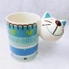持ち手にかわいい猫の飾りがついたマグカップです。