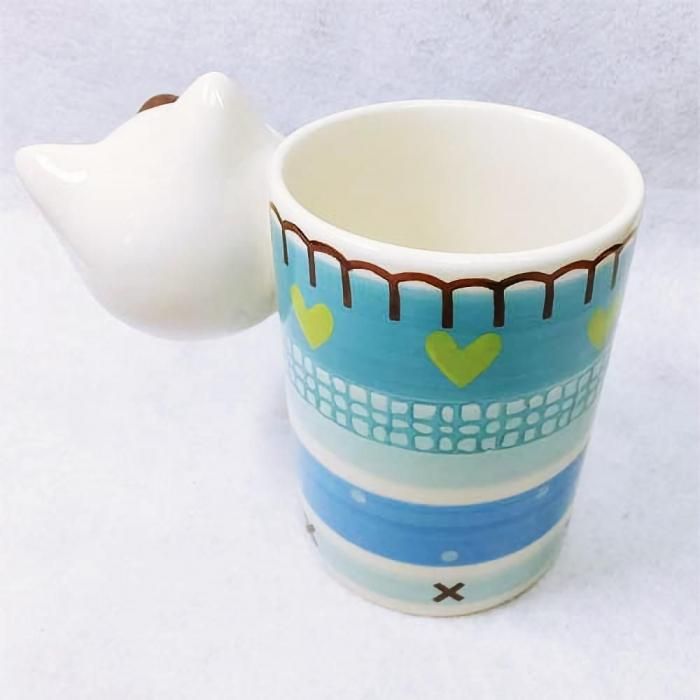 持ち手にかわいい猫の飾りがついたマグカップです。