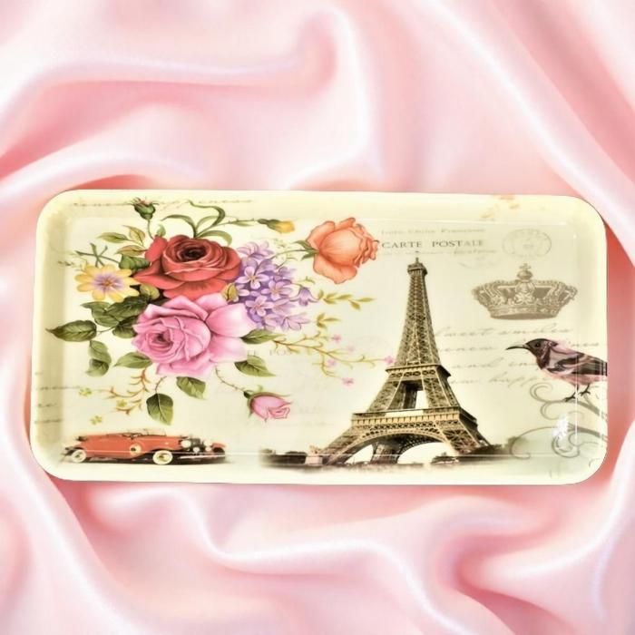 ローズ柄長方形トレー 6080037 薔薇 バラ エッフェル塔 トレイ