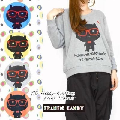 ゆるキャラ 猫プリント裏毛トレーナー ネコ キャット カットソー