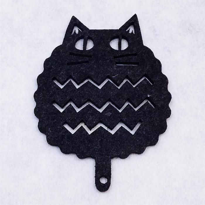 フェルトコースター ボーダーキャット ダークグレー 猫 ネコ
