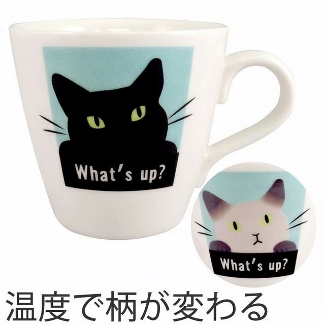 温度で色が変わる変温マグです。 43℃くらいからゆっくりと色が変化し、温度が高いほど早く変化する仕様。 カップの底にもかわいいネコのプリント入りです。 サイズ:約φ6×12×8.7cm 容量:310ml