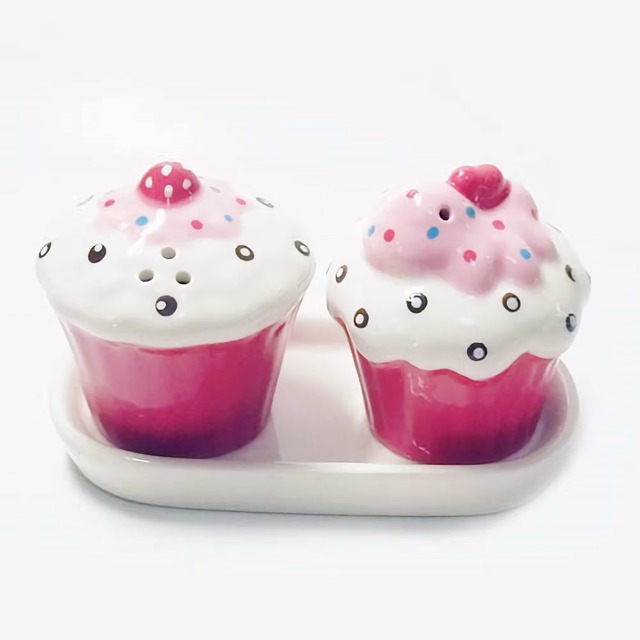 【クリアランス】陶製スイーツ型ソルト&ペッパーセット ピンク 塩コショウ入れ