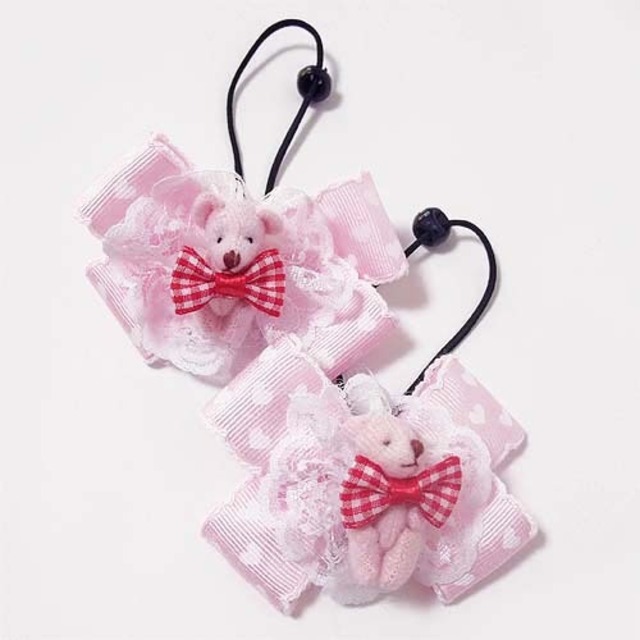 ハンドメイド ピンククマさんのヘアゴム2個 ベアー