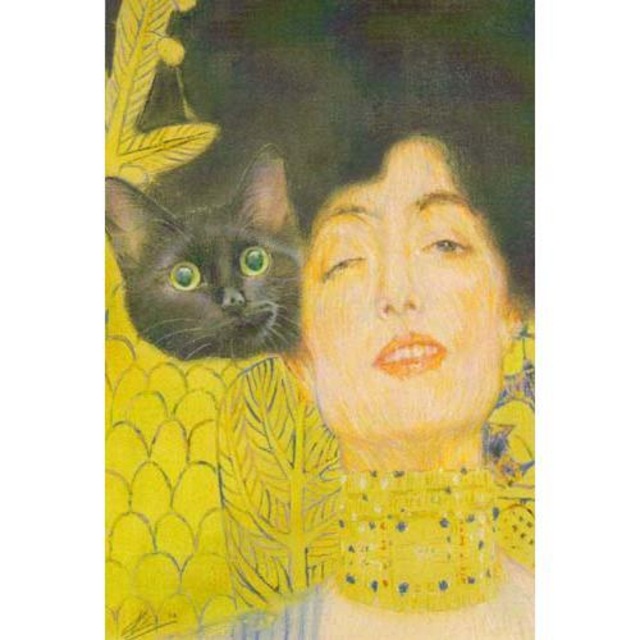 ポストカードNo413・「頭に猫を頂く自画像」 目羅健嗣 猫イラスト