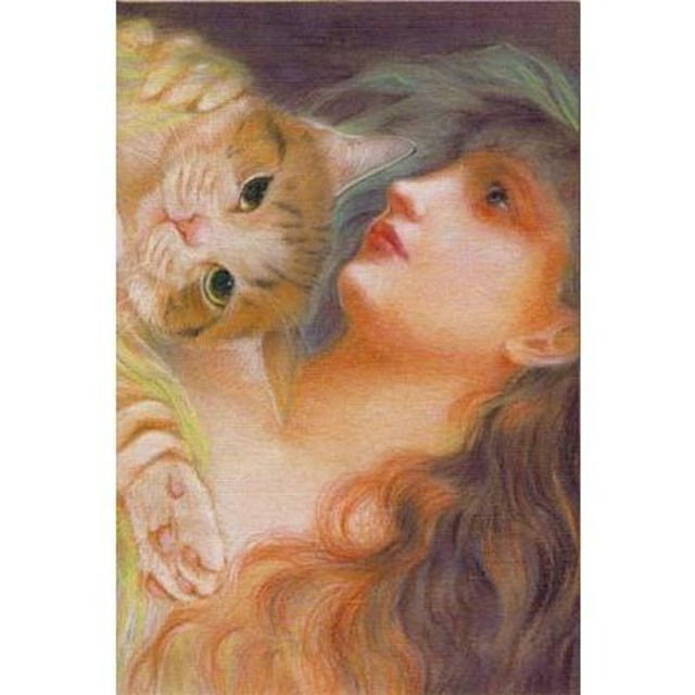 ポストカードNo394・「不詳 猫を持つ少女 ソフィアンダーソン」 目羅健嗣 猫イラスト