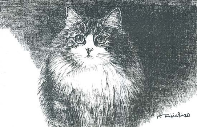 藤重日生 モノクロ猫絵カード ポストカードサイズ fuji070009