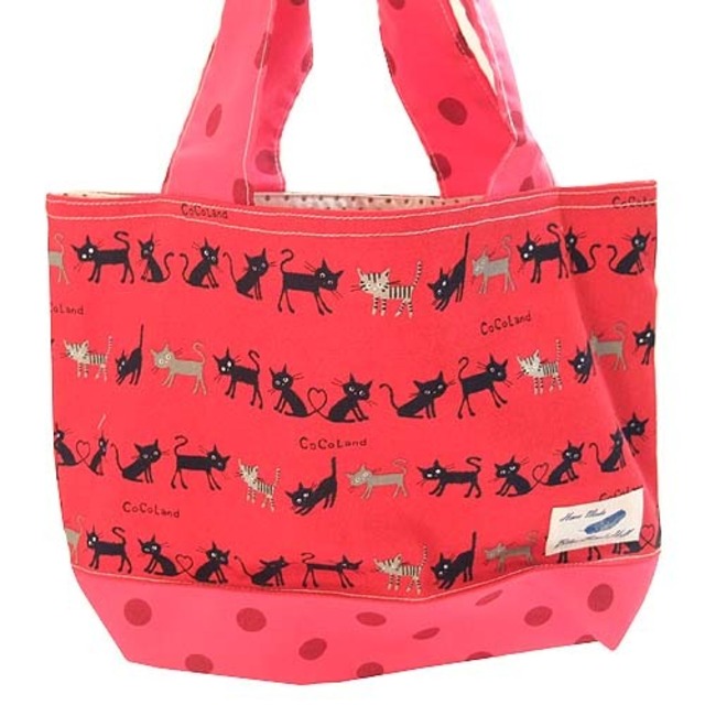 ハンドメイド 猫&水玉柄トートバッグ F ネコ キャット ドット