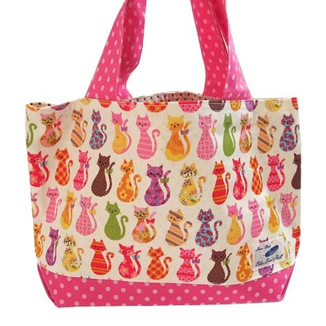 ハンドメイド 猫&水玉柄トートバッグ A ネコ キャット ドット