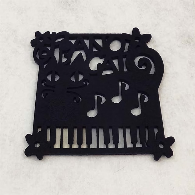 黒猫のシルエットが愛らしいフェルト素材のコースターです。 お気に入りのカップと一緒に使えば、食卓が一気に華やかな雰囲気に包まれます。 特に音楽好きや猫好きな方にはたまらないデザインで、インテリアにもなじみやすい一品です。 黒猫部分は取り外し可能です。 サイズ:約W11×H8.5cm 素材:フェルト 【メール便可】