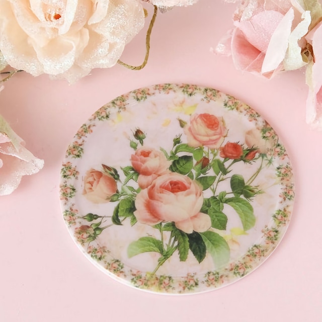 薔薇柄のメラミンコースター ピンクローズ バラ