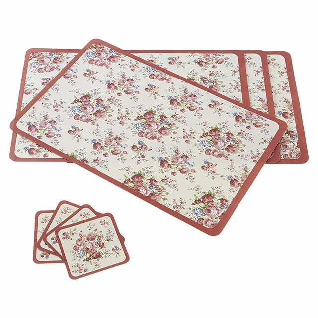 ランチョンマット&コースター4Pセット 23096 ピンクローズ 薔薇 バラ