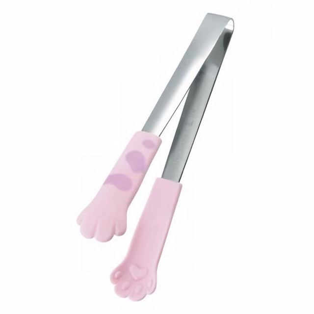 かわいい肉球付の、あると便利な薬味トングです。 しっかりと握れる形状で、調理やサービングにとても便利です! 桃たまの愛らしい色合いがキッチンを明るく彩ります。 サイズ:全長12cm 素材:ステンレススチール、樹脂部:66ナイロン+ガラス繊維(抗菌剤入) 耐熱温度:180度 耐冷温度:-20度