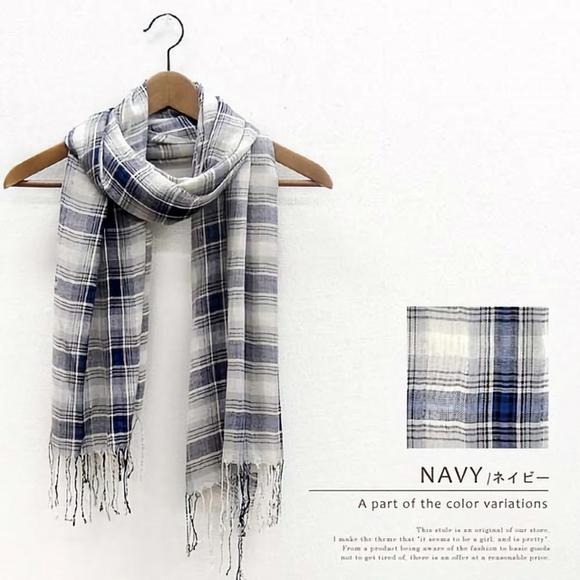 【クリアランス】チェックラメ入りストール ネイビー 春夏
