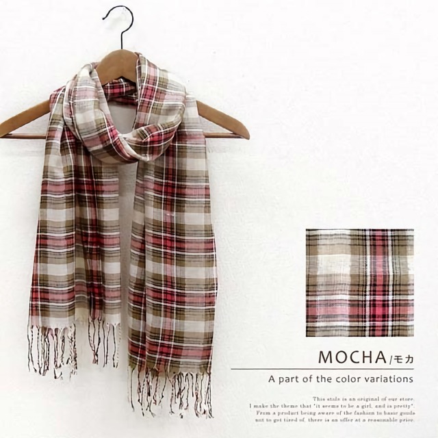 【クリアランス】チェックラメ入りストール モカ 春夏
