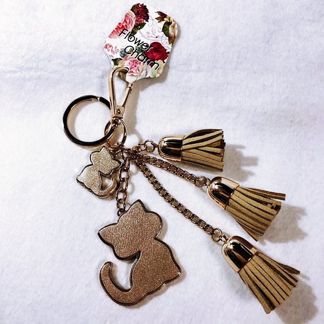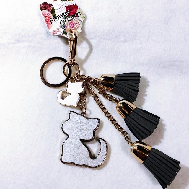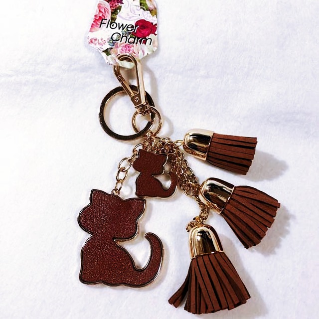 猫のかわいいバッグチャーム。 キーホルダーとしても使えます。 親子猫のモチーフがほっこりとした雰囲気を演出し、見る人の心を和ませます。 猫好きな方への気軽なプレゼントにいかがでしょう? サイズ:全長約17cm 【メール便可】 ※在庫処分のためお求めやすい価格でご提供させていただきます。 定価1045円