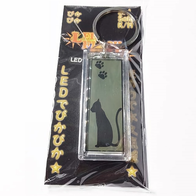 かわいい猫のシルエットがチカチカ点滅するキーホルダーです。 LED使用で半永久的に動きます。 絵柄が数種ございますので、お好きなものをお選び下さい。 ※点滅が始まらない時は、しばらく揺すってみてください。 サイズ:約6×2.5×1cm 【メール便可】