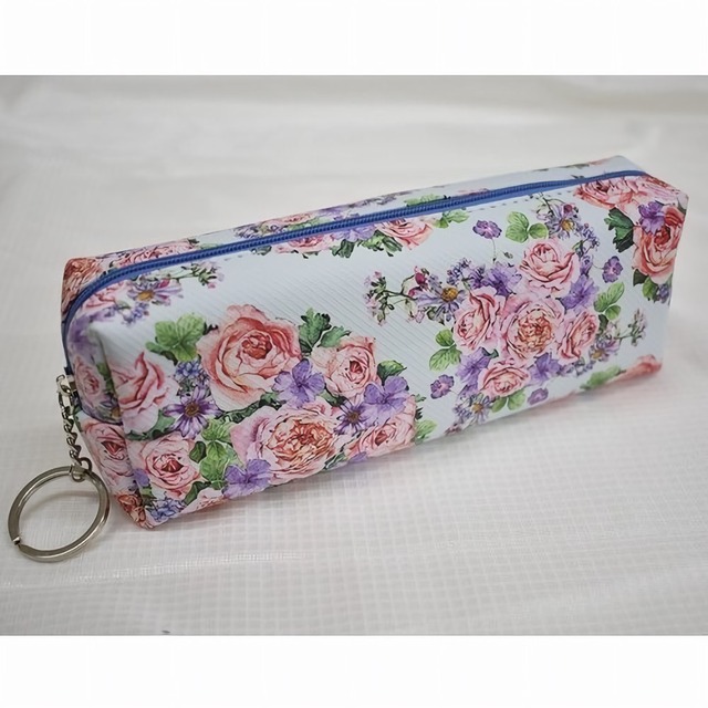 ローズ柄のペンケース。 小物入れとしてもお使い頂けます。 ファスナー部分にはキーチェーンが付いており、お気に入りのチャームを付けることができるのもポイントです。 ポリエステル素材なので丈夫で長く使えます。 サイズ:約18x7x5cm 素材:ポリエステル