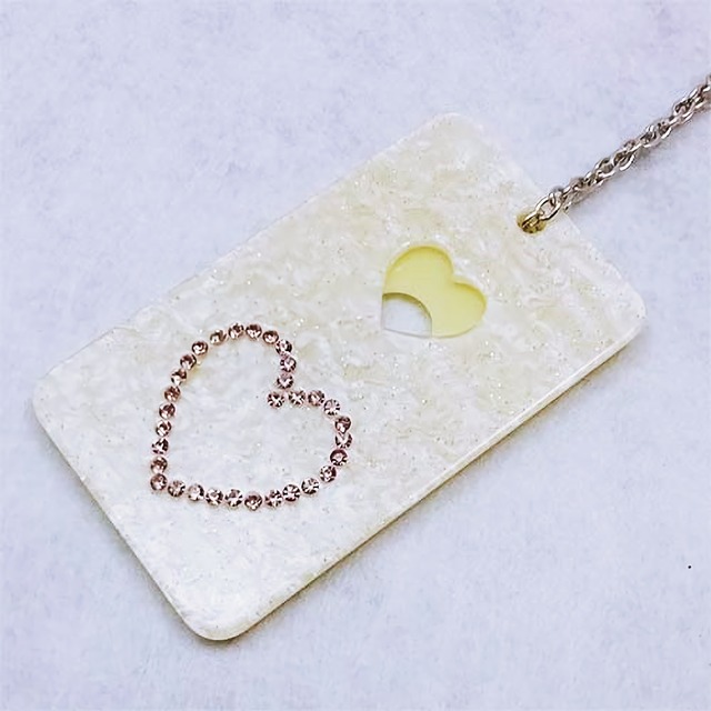 アクリル製 ハートストーンパスケース アイボリー 定期入れ ラインストーン