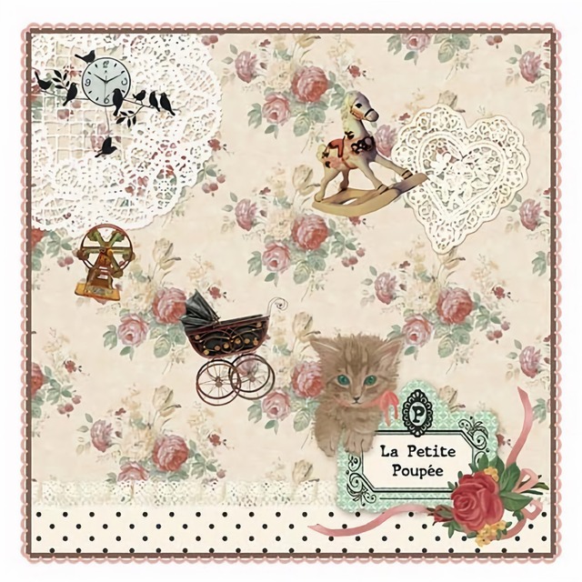 手刺しゅうタオル バラと子猫 オフホワイト ハンカチ ハンドタオル ネコ キャット