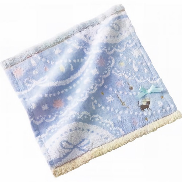 ドットキャット タオルハンカチ ブルー キャット 猫
