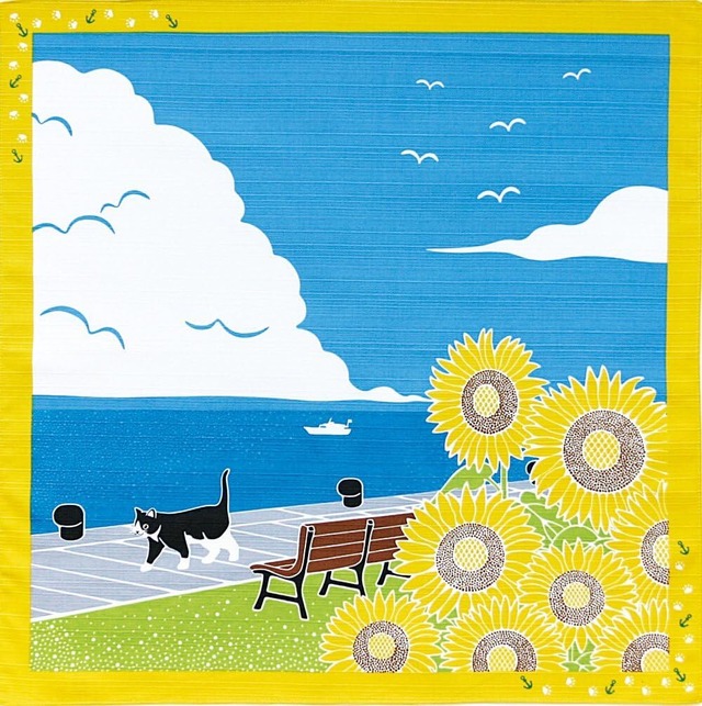 小風呂敷 たまのお散歩 ひまわり 猫 ネコ キャット タペストリー ランチクロス