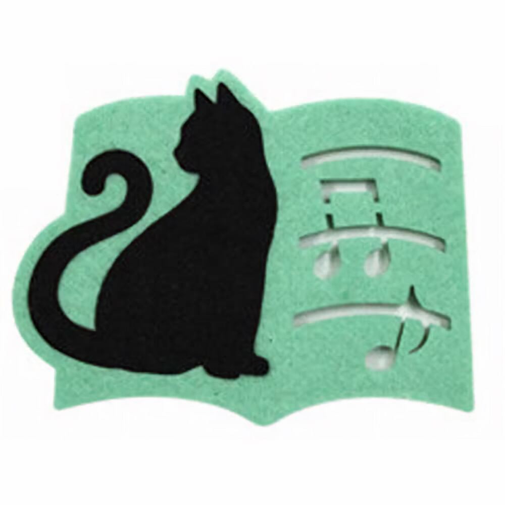 黒猫フェルトコースター 音符グリーン キャット ネコ