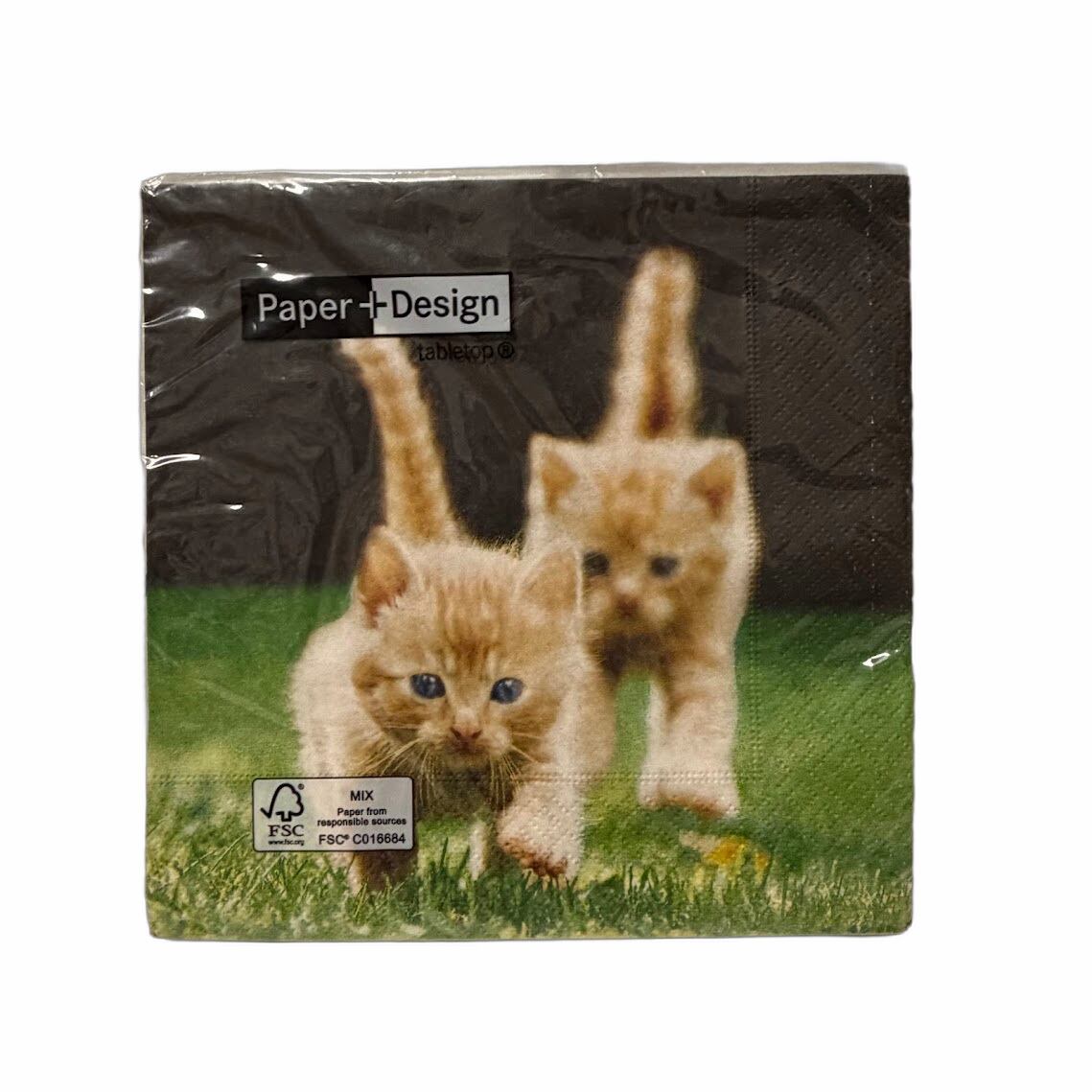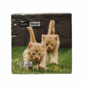 芝生の上をお散歩している二匹の猫の様子がかわいいペーパーナプキンです。