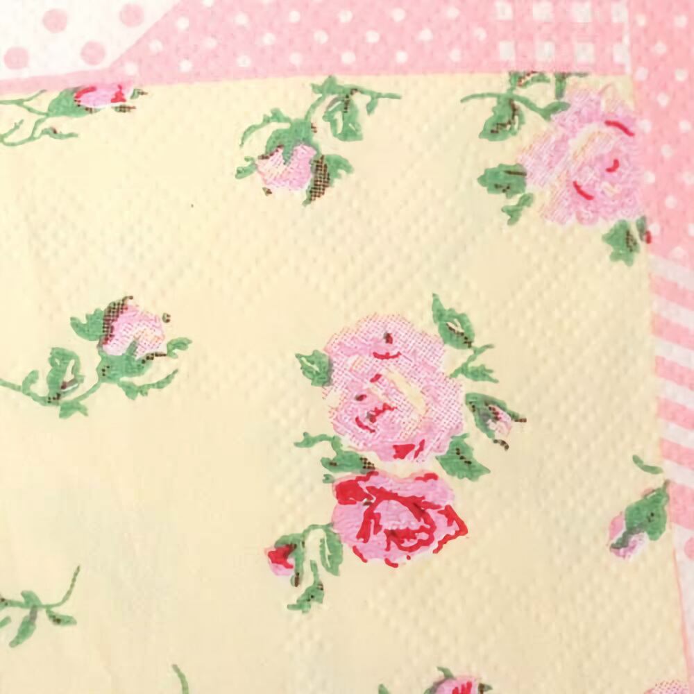 ローズ柄ペーパーナプキン イエローピンク 紙ナプキン バラ 薔薇