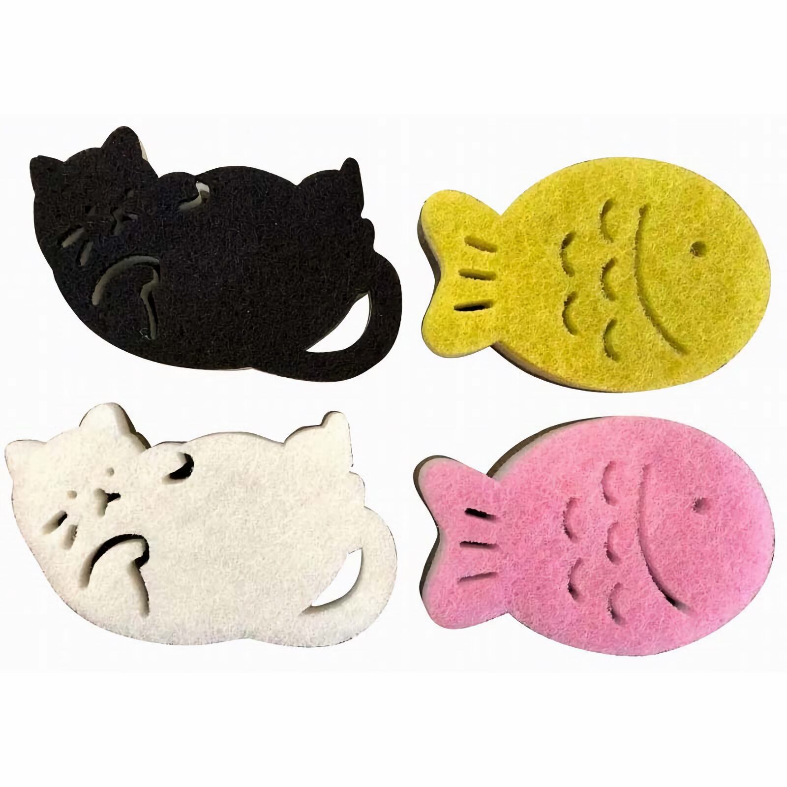 ダイカットキッチンスポンジ4個セット ネコ 猫 キャット