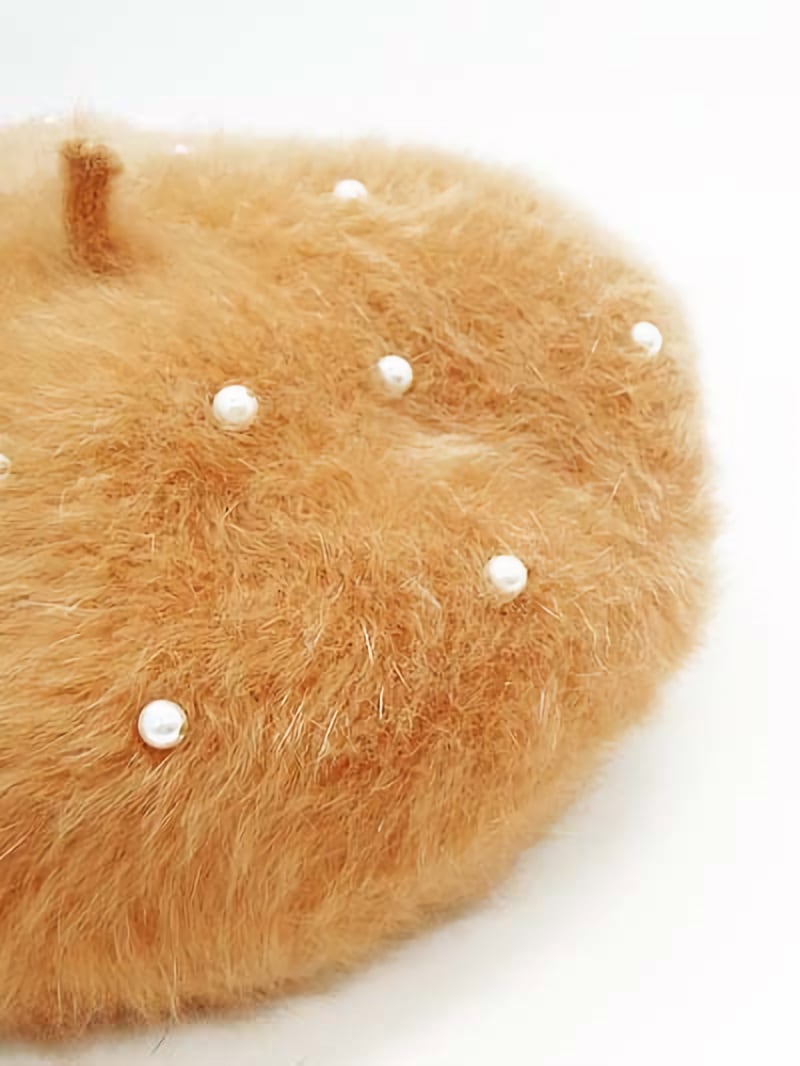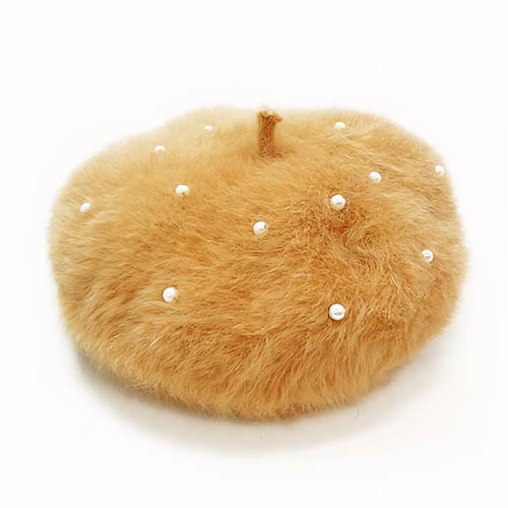 パール付アンゴラベレー帽 キャメル 帽子 秋冬