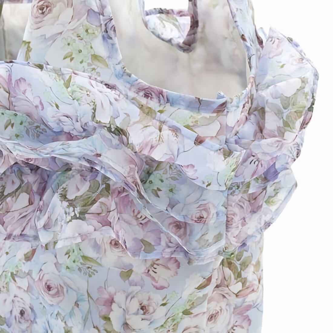 フリル付エコバッグ パープル系 薔薇 バラ ローズ