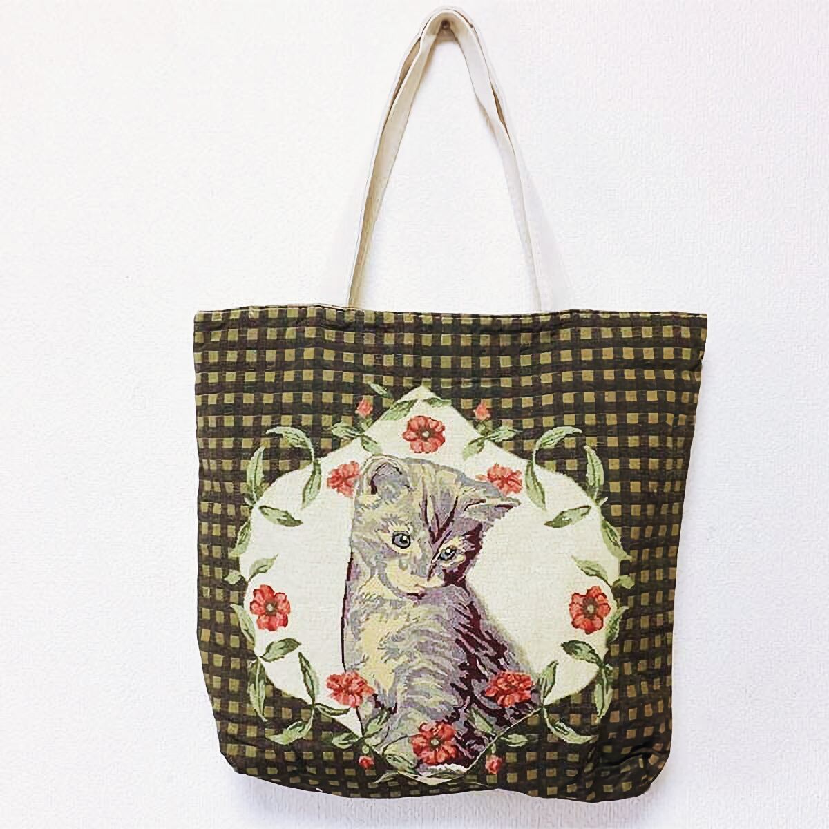 ネコ柄 ゴブラン織りのトートバッグ A柄 猫 キャット