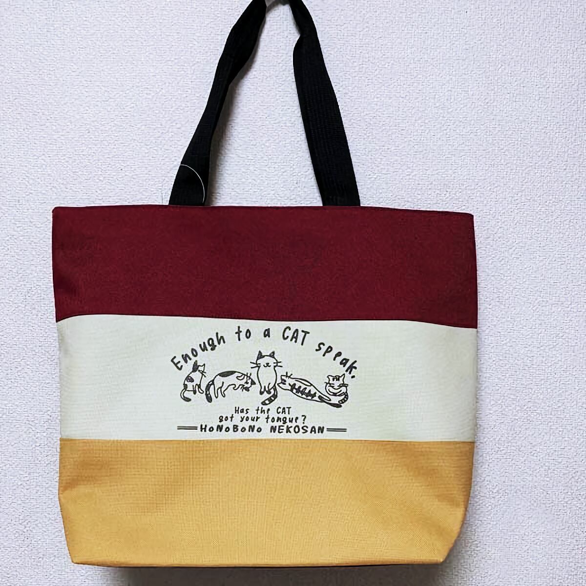 ゆるかわ猫イラストでたっぷり入るサイズのトートバッグ。