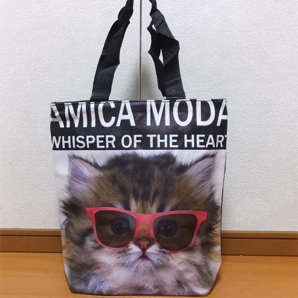 あどけない子猫の写真プリントがかわいらしいバッグです。