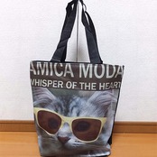 あどけない子猫の写真プリントがかわいらしいバッグです。