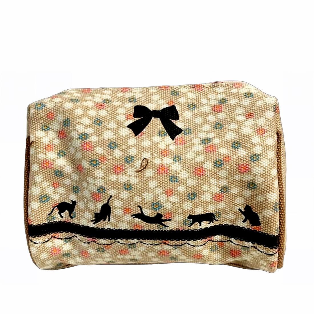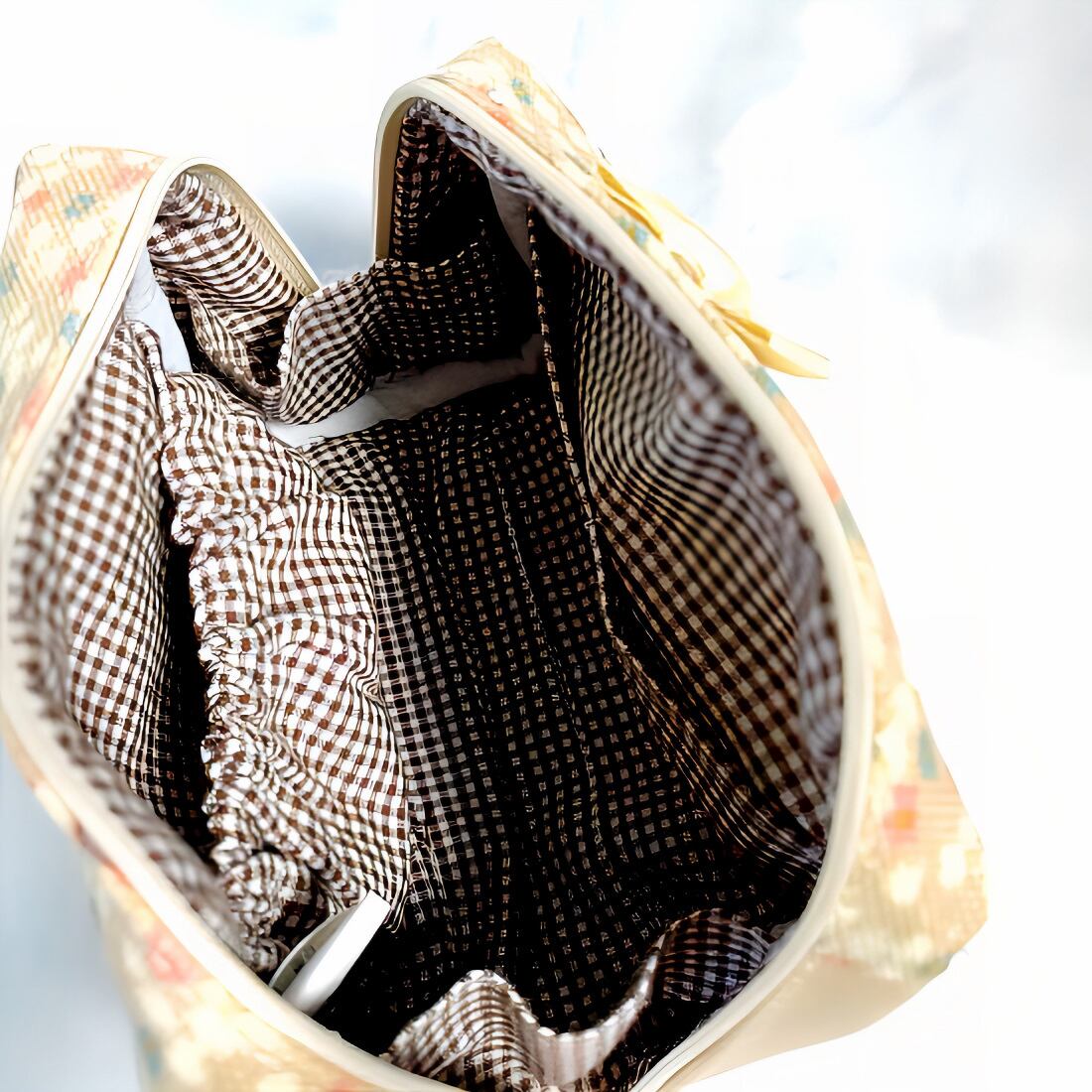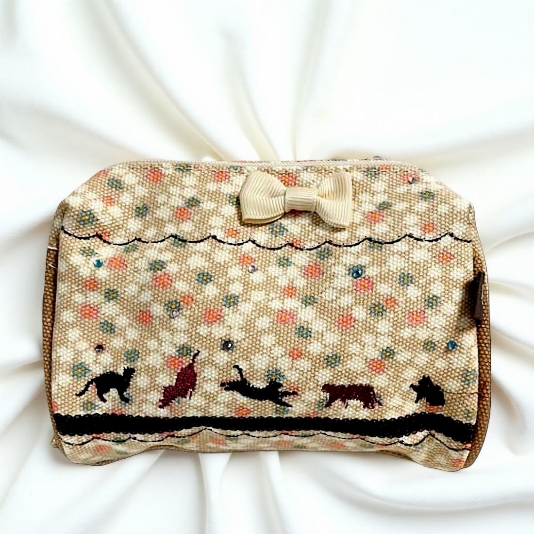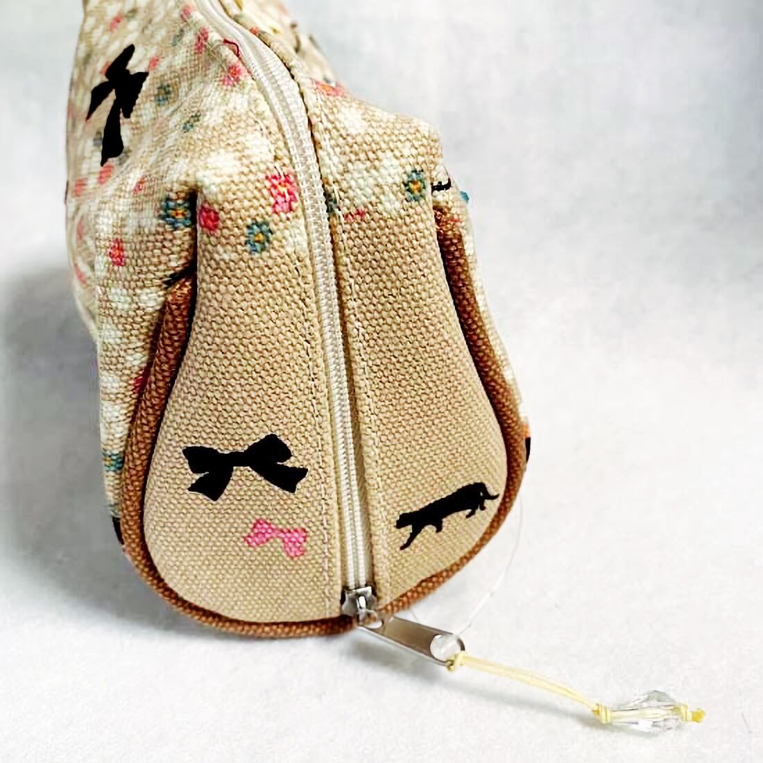 優しい風合いの綿生地に可愛いプリントをデザインしたラウンドポーチです。