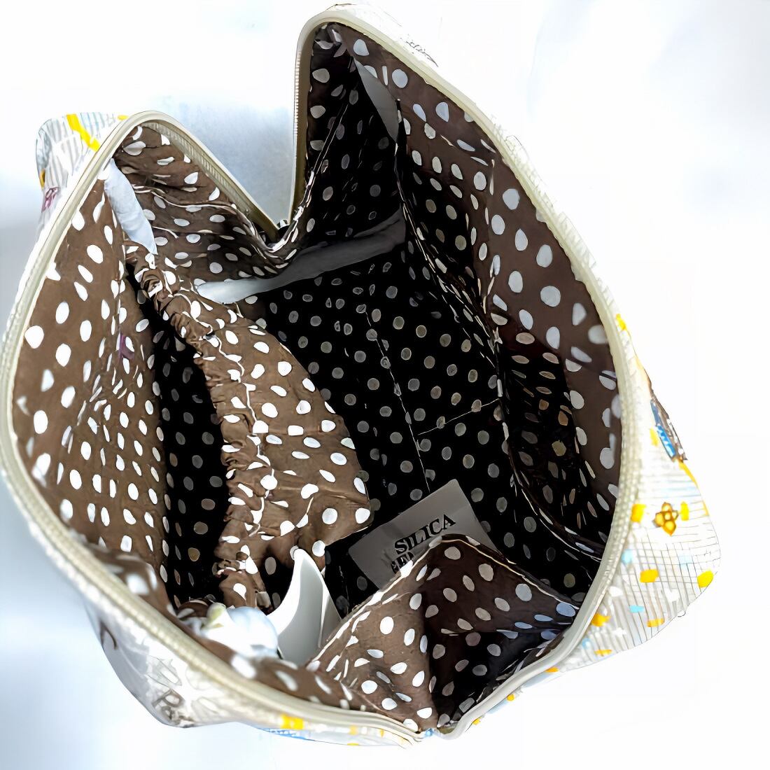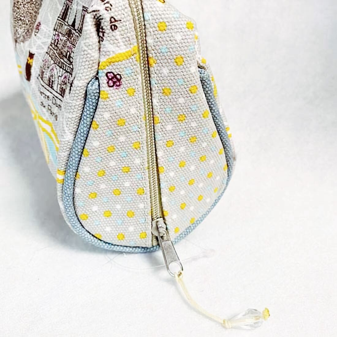 優しい風合いの綿生地に可愛いプリントをデザインしたラウンドポーチです。