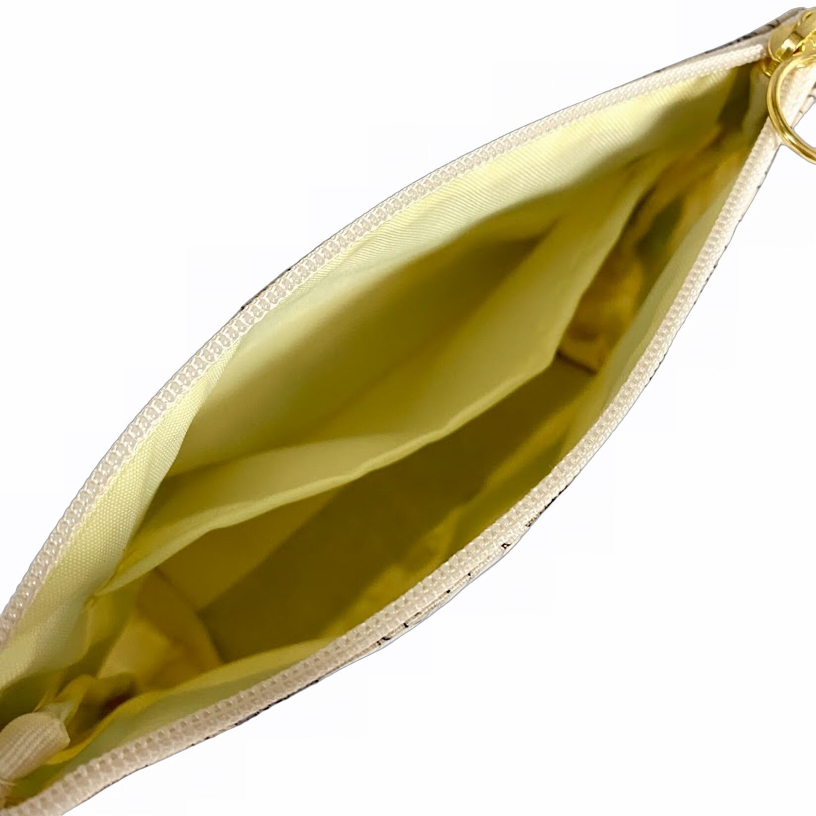 魚釣りをしている猫のイラストがかわいいポーチ。