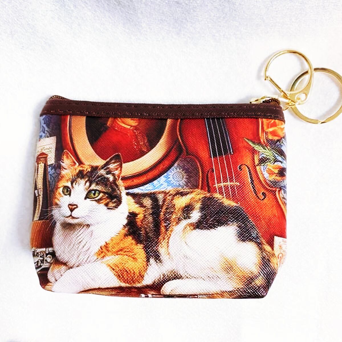 猫のプリントが可愛らしいミニポーチ。