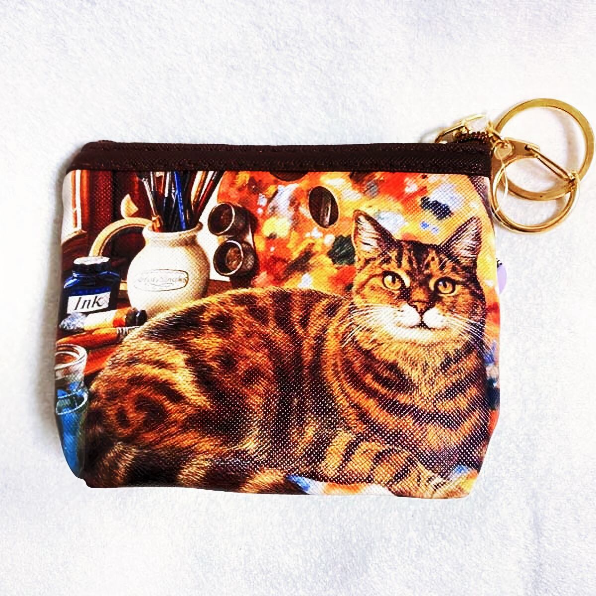 猫のプリントが可愛らしいミニポーチ。