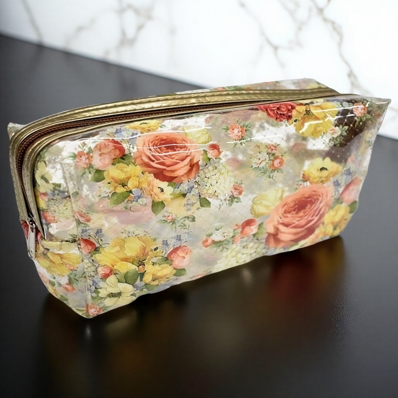 美しいバラのデザインが施されたシックなクリアポーチ。