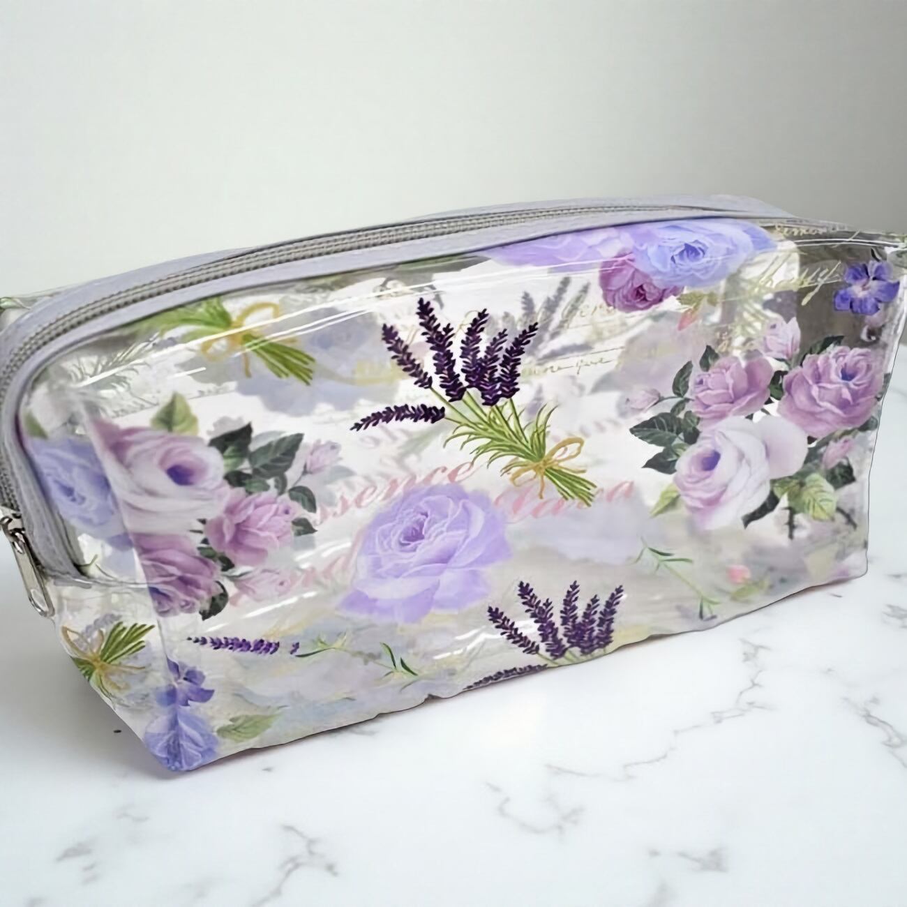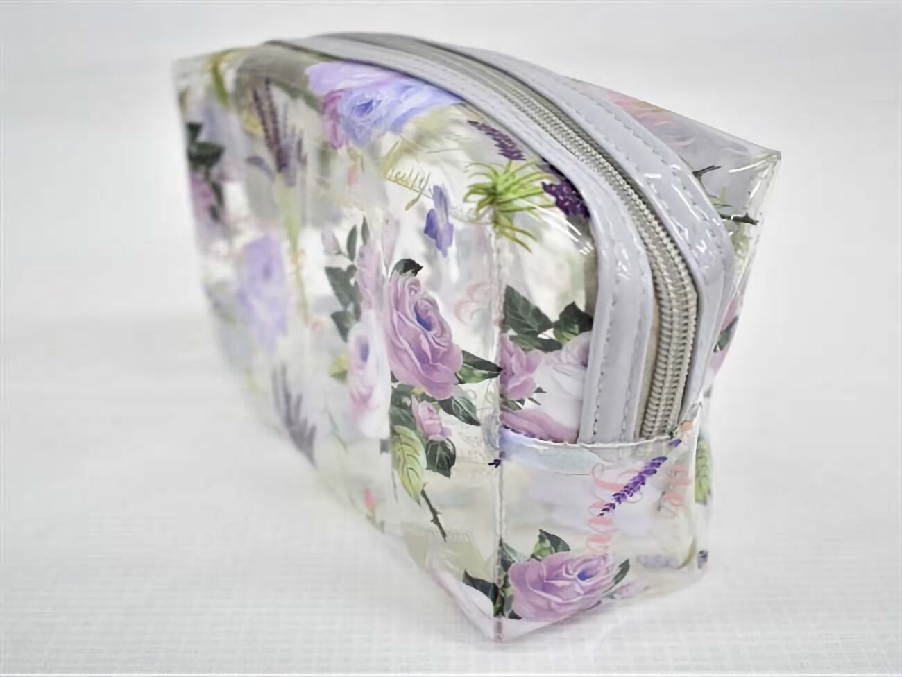 美しいバラのデザインが施されたシックなクリアポーチ。