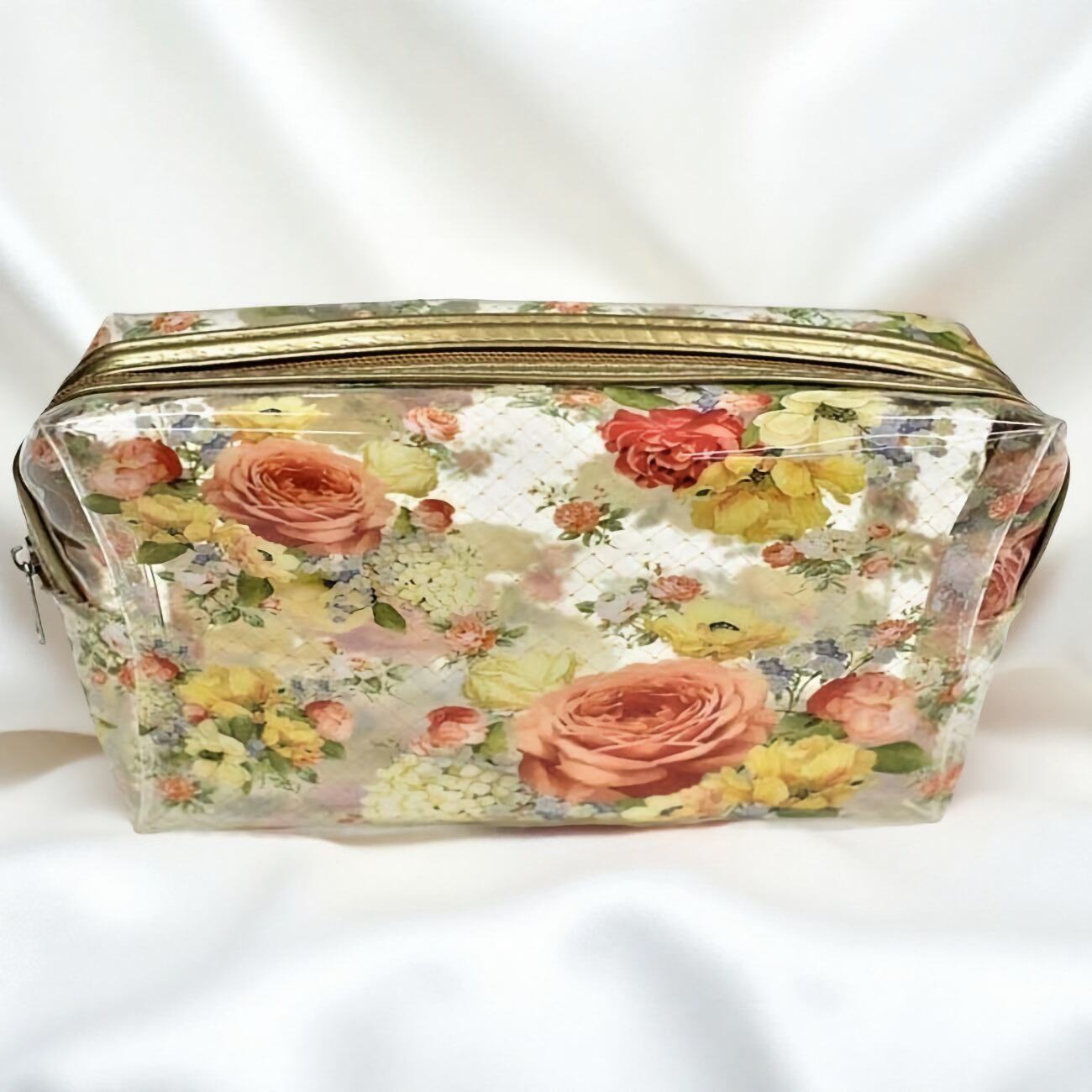 美しいバラのデザインが施されたシックなクリアポーチ。