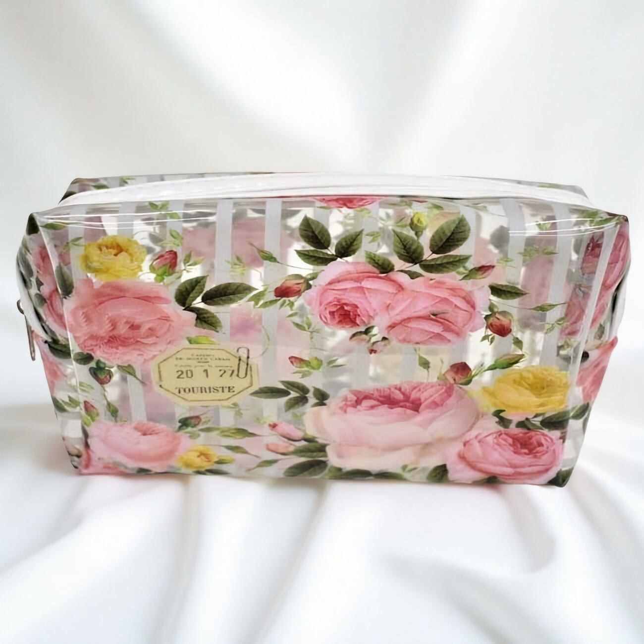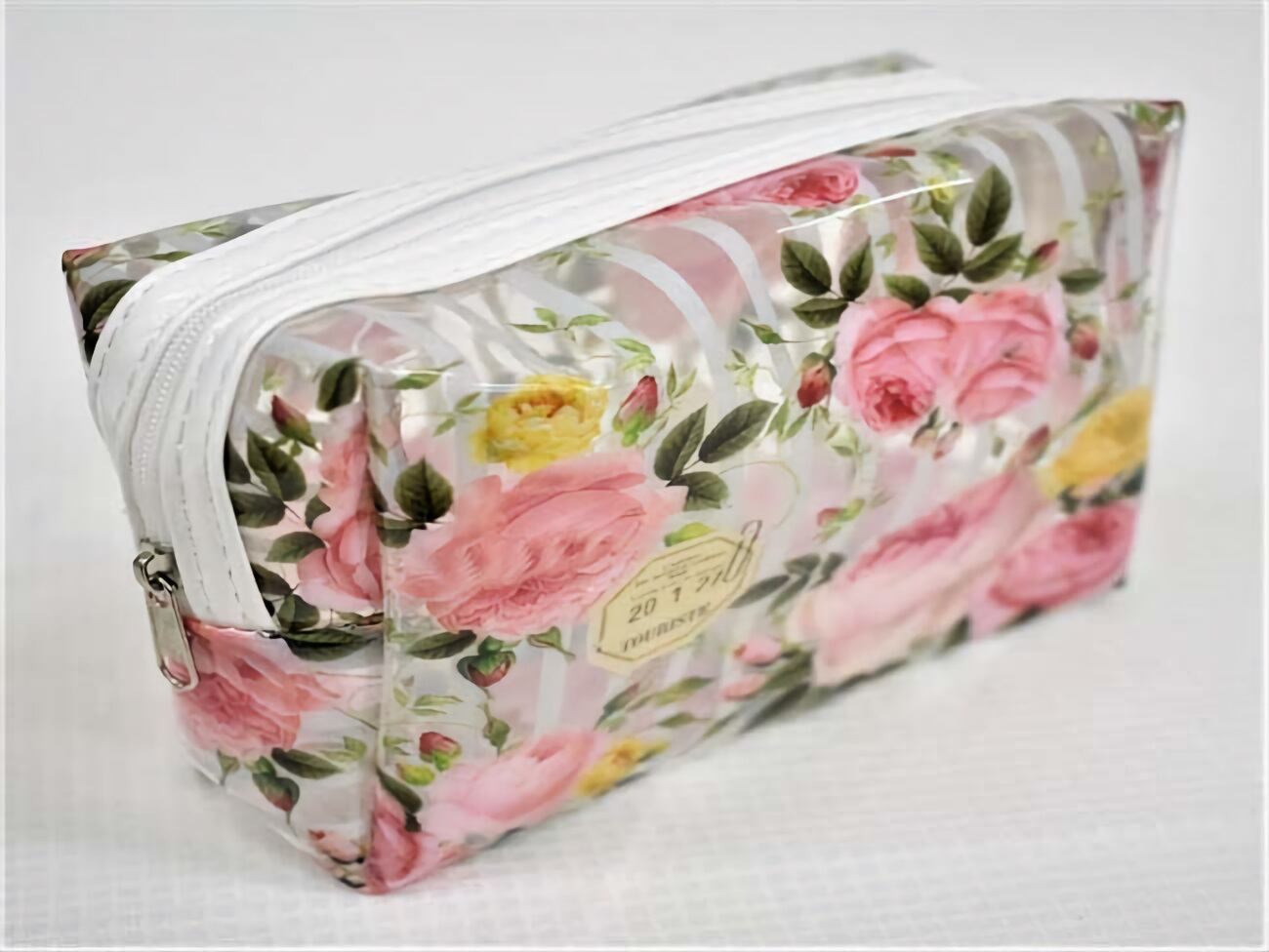 美しいバラのデザインが施されたシックなクリアポーチ。