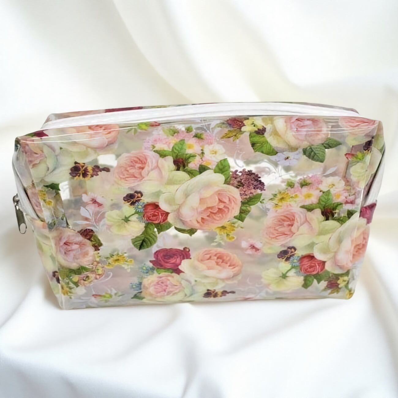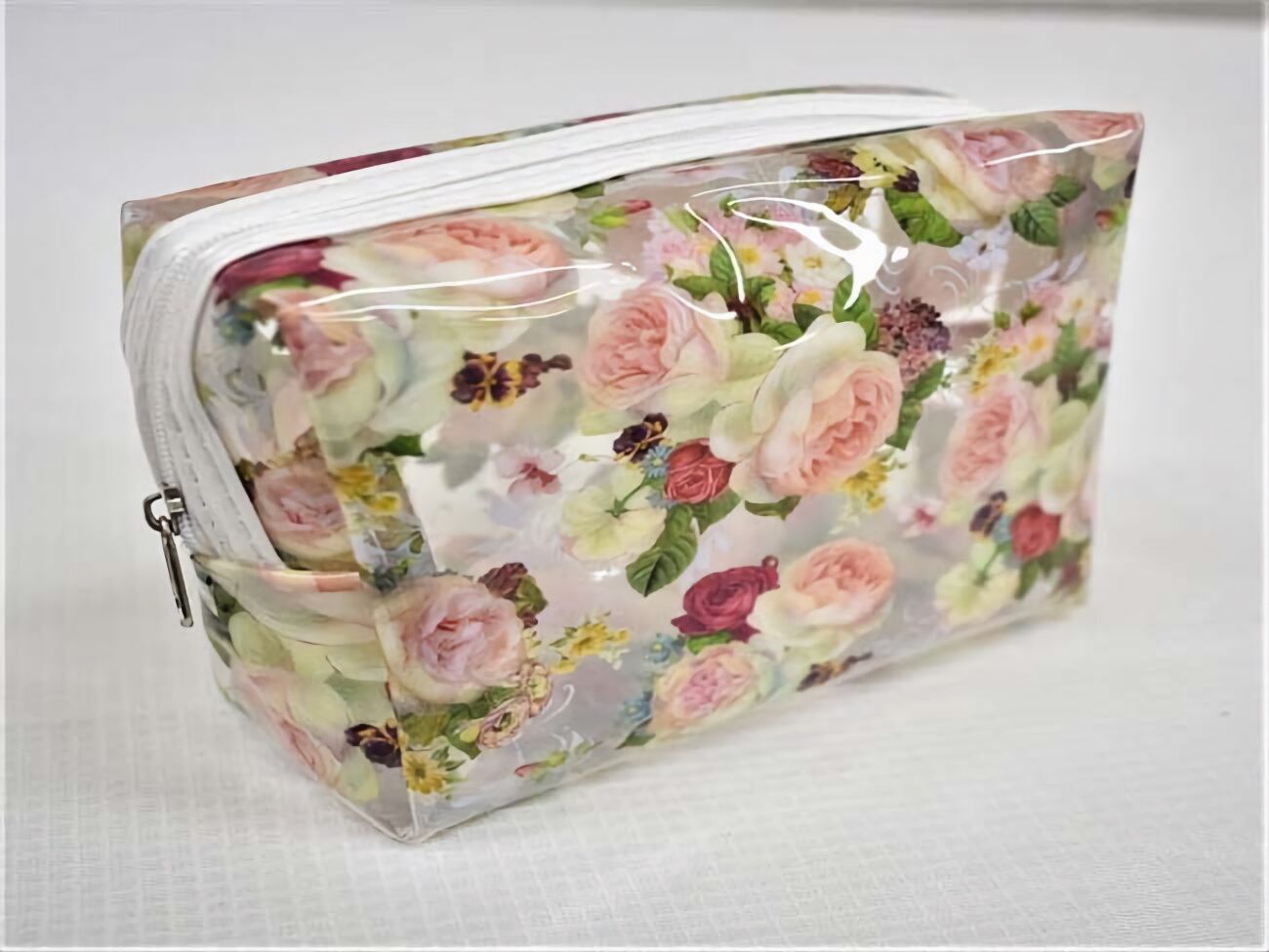 美しいバラのデザインが施されたシックなクリアポーチ。