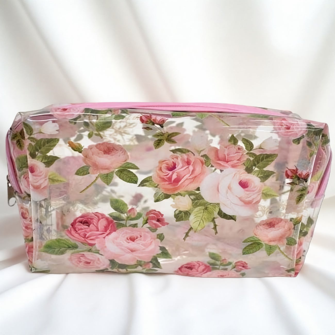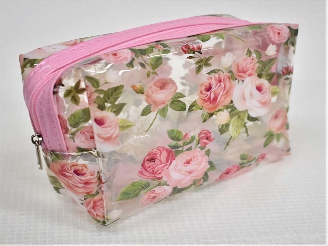 美しいバラのデザインが施されたシックなクリアポーチ。