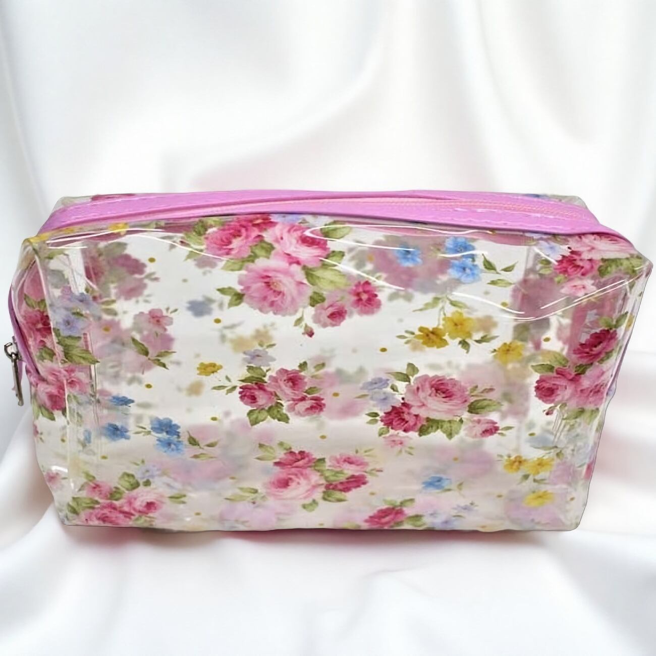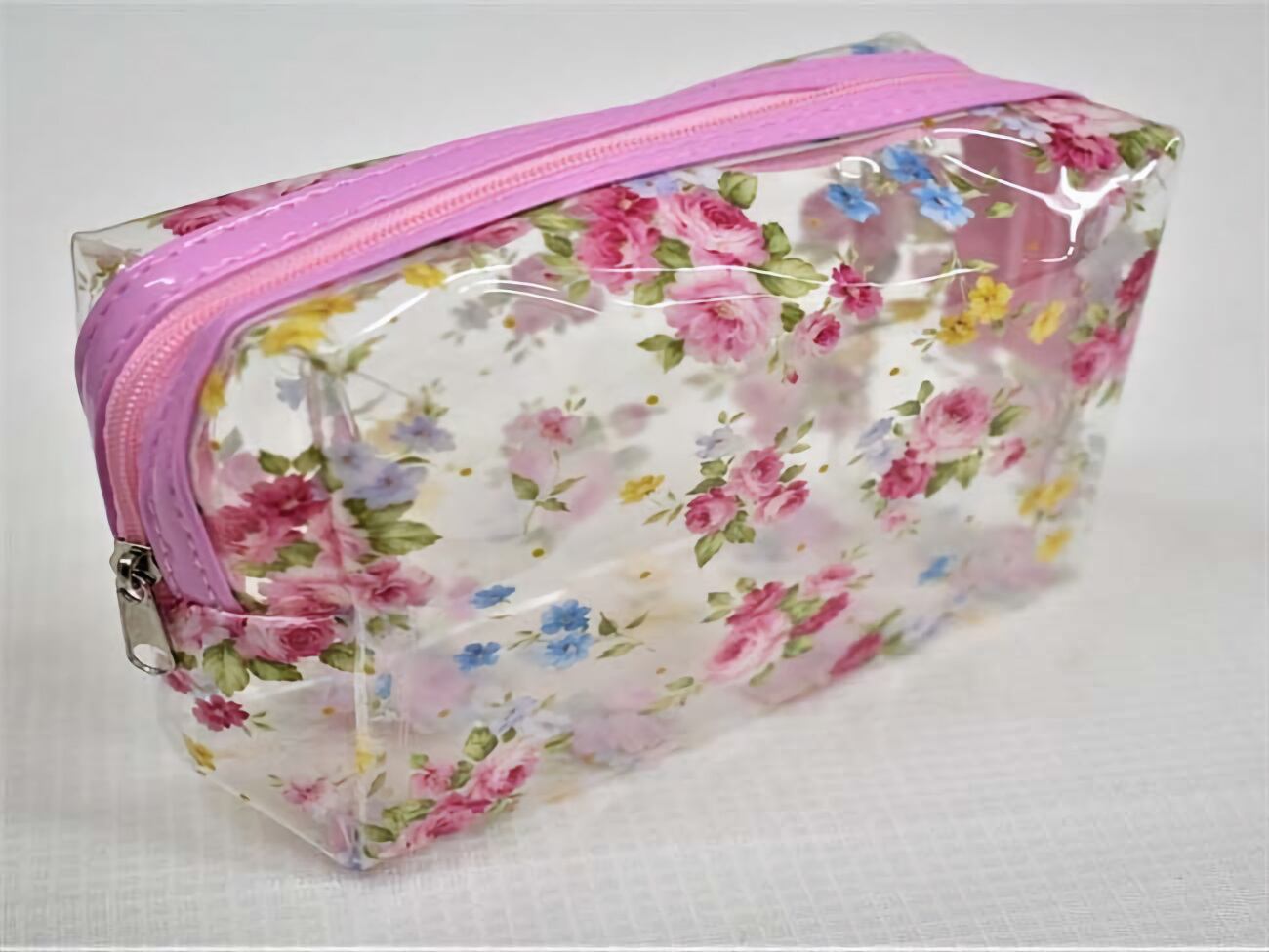 美しいバラのデザインが施されたシックなクリアポーチ。