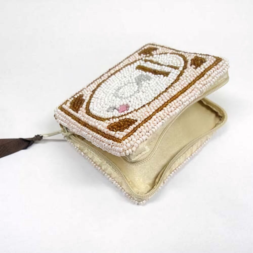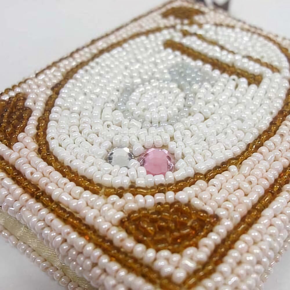 ビーズで繊細に装飾されたブック型のミニポーチです。