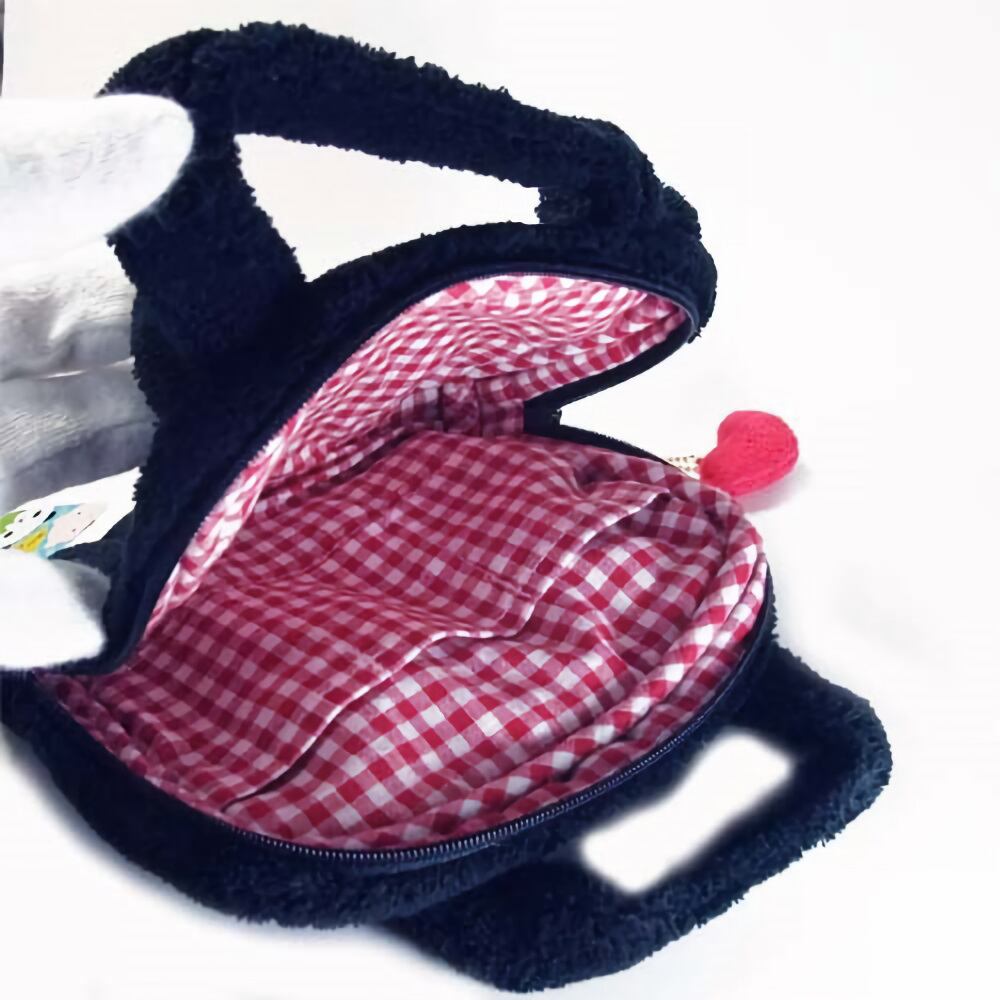 ひらべったいスクエアのファスナーをあけると中はかわいいギンガムチェック。